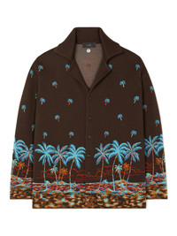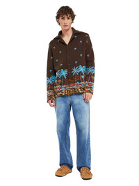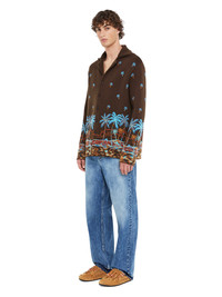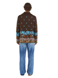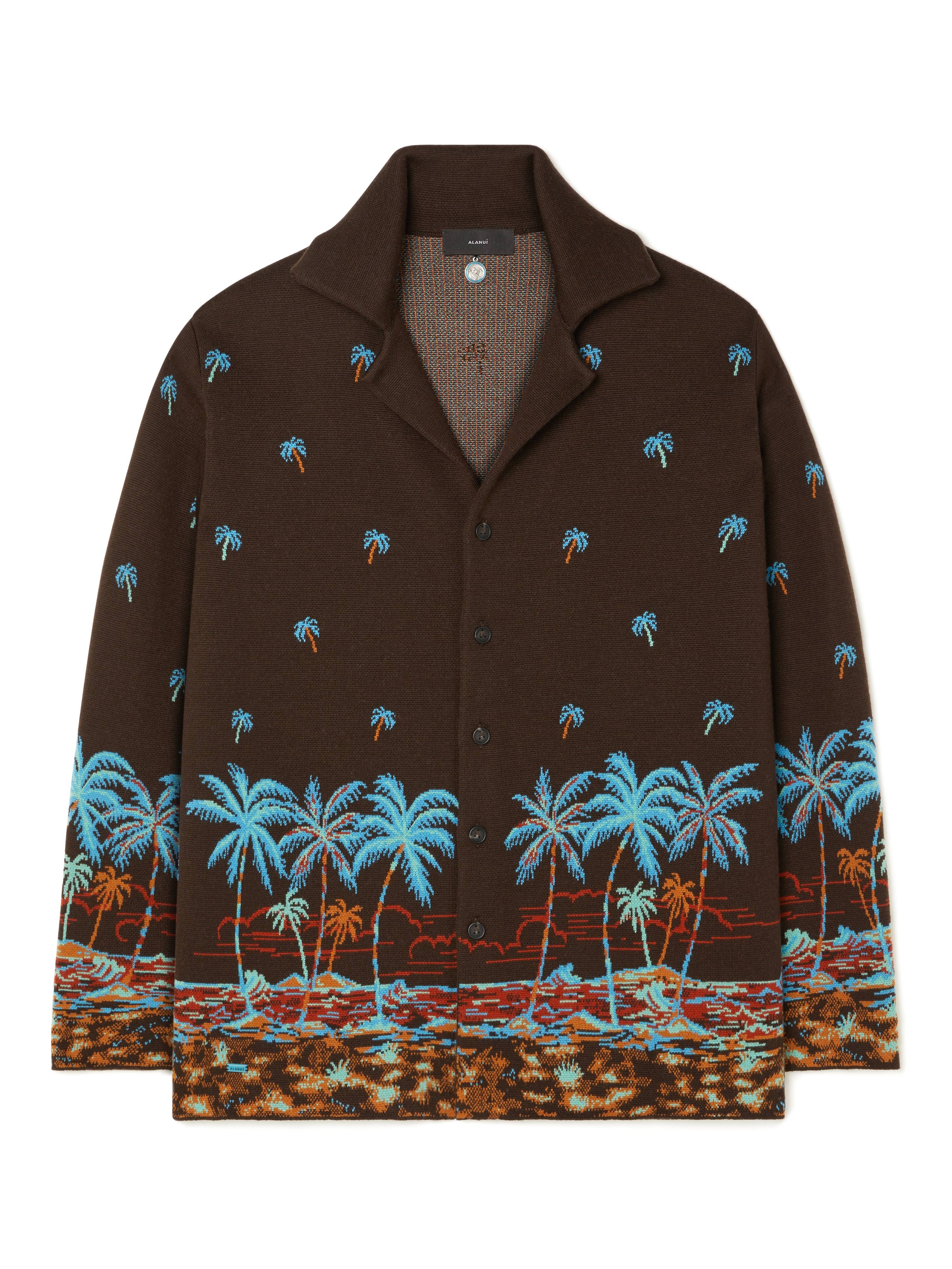 A new addition to the Tale of a Hawaiian family for the Spring/Summer 2025 season, the long-sleeved shirt is meticulously crafted from the softest virgin wool and showcases the signature palm-dotted landscape design in high-definition double jacquard. Finished with real horn buttons. DETAILS - Product Code LMHY004R25KNI0016E43 - Made In Italy - Crafted from 100% Virgin Wool. - This item weighs 1290 gr and takes four hours to be knitted and another four to be assembled. - The model is 189 cm and wears a size M. - This item fits true to size.