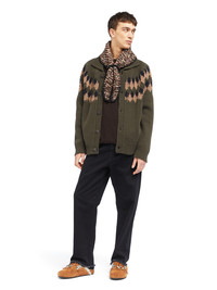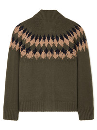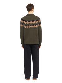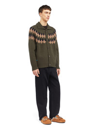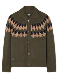 Alanui answers the call of the wild this season. Crafted from virgin wool, the cozy Sweet Winter Cardigan pays tribute to classic Nordic style with a reimagined Fair Isle motif in placed jacquard knit. Featuring a raglan jacket fit and polo collar, the style is finished with side seam pockets, bone fisheye buttons, and ribbed trims. DETAILS - Product Code LMHQ005E25KNI0025664 - Crafted from 100% Wool. - The model is 189 CM and wears a size M. - This item fits true to size.