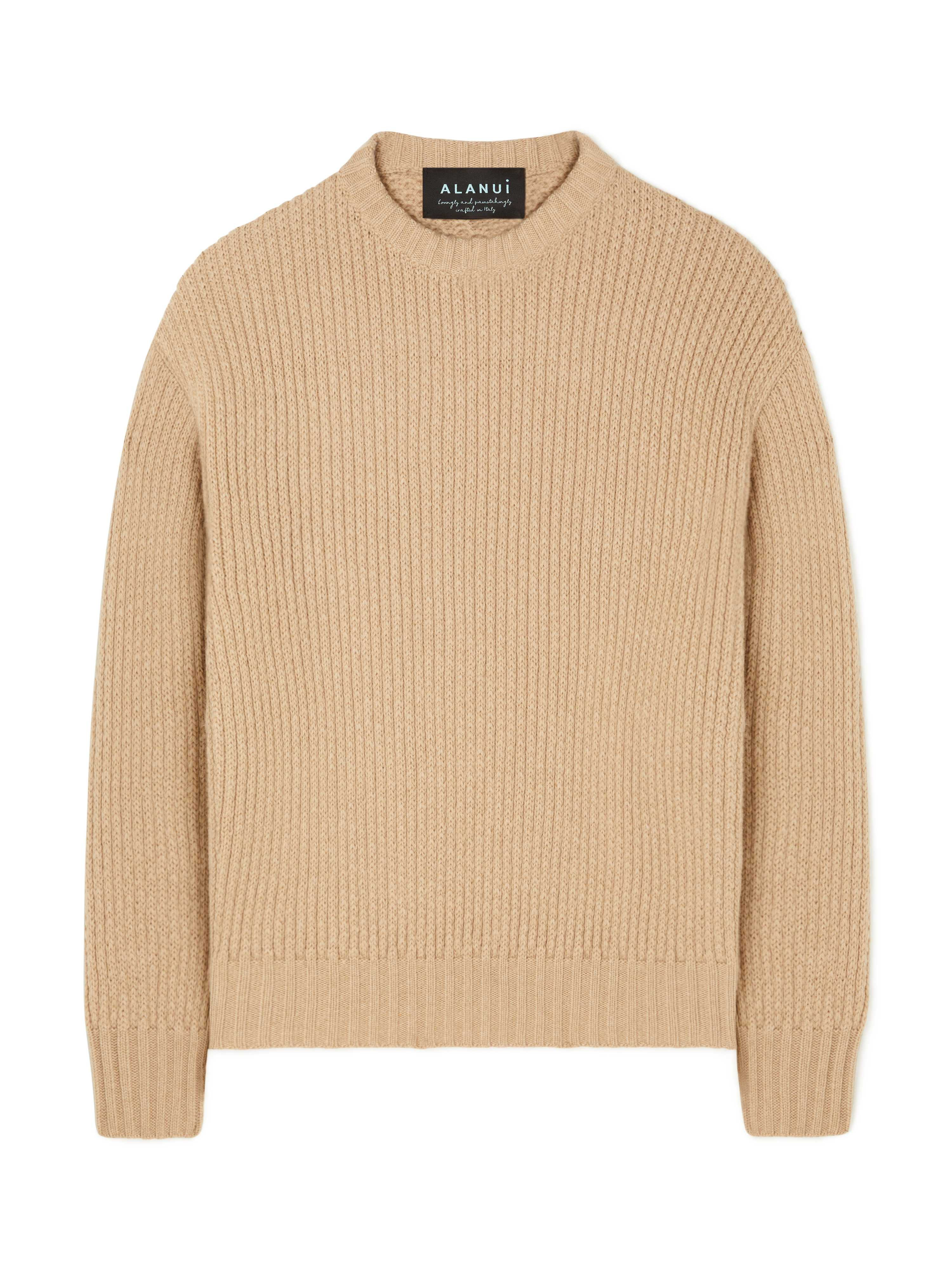 Each piece in the Alanui Finest line embodies premium quality and simplicity to form the foundations of a contemporary wardrobe. The Alanui Finest Sweater pairs a crewneck fit with the ultra-soft luxurious touch of a cashmere and cotton blend. Crafted with voluminous English rib stitch and complete with ribbed finishes. PRODUCT DETAILS Product Code LMHE033R24KNI0026100 Made in Italy. Crafted from 64% Cashmere and 36% Cotton. The model is 189 cm and wears a size M. This item fits true to size.