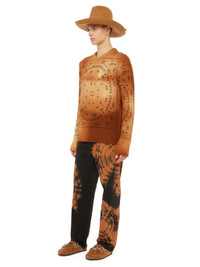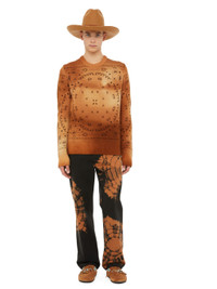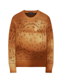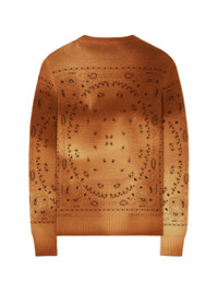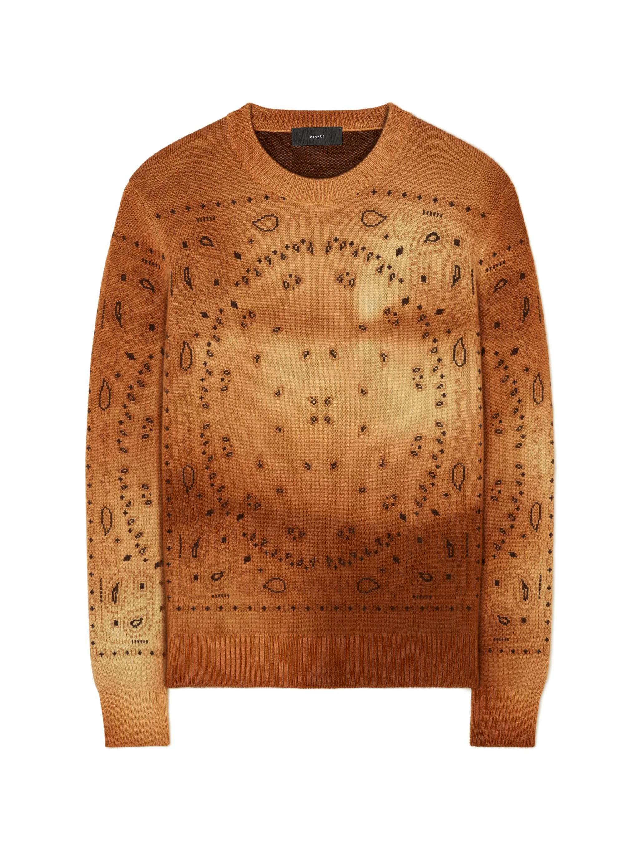 Alanui draws inspiration from the vibrant energy of the desert this season. Crafted from extra fine Merino wool using double jacquard knit, the Hues of the Desert Sweater pairs the iconic Bandana pattern with a warm, earthy tie-dye print. Compete with ribbed finishes. PRODUCT DETAILS Product Code LMHE021E24KNI0016G6G Made In Italy Crafted from 100% Virgin Wool. This item takes two hours to be knitted and another one hour and an half to be assembled. The model is 187 cm and wears a size M. This item fits true to size.