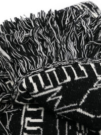 intarsia-knit frayed scarf Highlights - Black/white - Virgin wool blend - Knitted construction - Patterned intarsia knit - Frayed edge - Wrap design Made in Italy Composition Virgin Wool 84%, Polyamide 16% SIZE & FIT Measurement LENGTH 74.8 in(190 cm) WIDTH 51.18 in(130 cm) Washing instructions Dry Clean Only