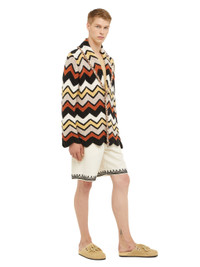 For Spring / Summer 2024, Alanui travels through the kaleidoscopic colors, scents, and cultures of India. Made from a cotton blend, the Kaleidoscopic Cardigan uses 3D link stitch to create a mesmerizing multicolored chevron motif that nods to 70s style, further complemented by a zig-zag hem. Featuring the original Icon fit, real horn buttons, and a fringed collar. PRODUCT DETAILS Product Code LMHB039R24KNI0036184 Made in Italy. Crafted from 76% Cotton and 24% Polyamide. The model is 189 cm and wears a size M. This item fits true to size.
