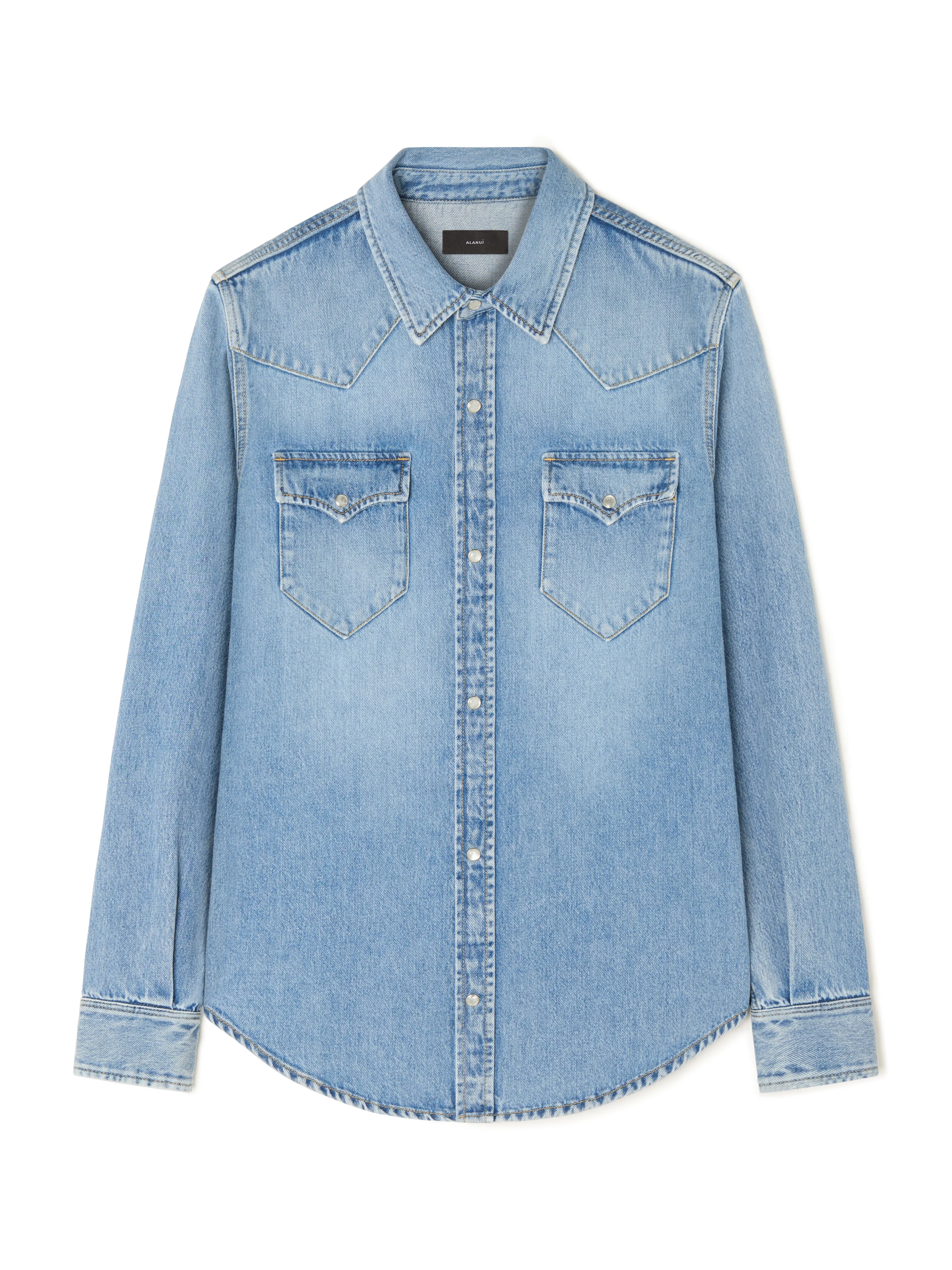 A relaxed wardrobe staple in light-wash denim, finished with luminous mother-of-pearl snap buttons. Pair with matching pants for a sun-faded take on double denim. DETAILS - Product Code LMYD007R26DEN0044040 - Crafted from 100% Cotton Product weight: 730 gr - The model is 189 cm and wears a size M. - The item fits true to size.