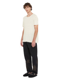 Part of the Alanui Conscious Line, this T-Shirt is a sustainable wardrobe essential with a twist. Crafted from linen, the regular-fit T-shirts feature a subtle fringed finish and hand-stitched Alanui embroidery. DETAILS - Product Code LMHW002R25KNI0010404 - Made In Italy - Crafted from 100% Linen. - This item weighs 203 gr and takes one hour to be knitted and another two to be assembled. - The model is 189 cm and wears a size M. - This item fits true to size.