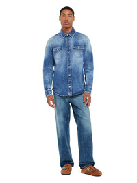 A classic everyday style crafted from medium washed denim, featuring a straight leg and ripped details. Pair with matching shirt for a double denim look. DETAILS - Product Code LMYA013R25DEN0014500 - Made In Italy - Crafted from 100% Cotton. - The model is 189 cm and wears a size 31. - This item fits true to size.