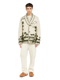 Kicking off in the Pacific Ocean, Alanui’s Fall / Winter 2025 trip celebrates the power of nature. Pairing the original Icon fit with a recycled cashmere and wool blend, the Palm Grove Tales Cardigan uses 3D double jacquard knit to paint a postcard-perfect Hawaiian volcano scene. Finished with real horn buttons and fringed edges. DETAILS - Product Code LMHB039E25KNI0020F56 - Crafted from 91% Cashmere 5% Wool 4% Polyammide . - The model is 189 CM and wears a size M. - This item fits true to size.