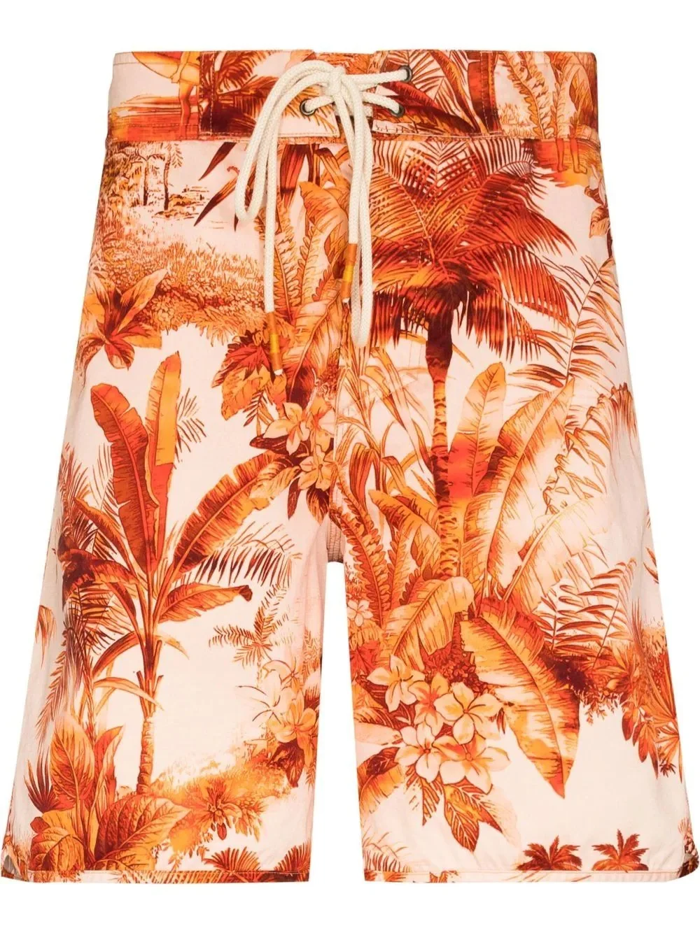 palm-tree print swim shorts burnt orange cotton drawstring waist logo patch to the rear straight leg Be mindful to try on swimwear over your own garments. Made in Italy Composition Outer: Cotton 100% Lining: Polyester 100% Washing instructions Machine Wash
