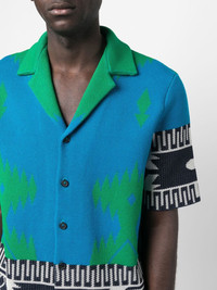 patterned intarsia-knit shirt black/multicolour cotton patterned intarsia knit notched collar front button fastening short sleeves Made in Italy Composition Cotton 100% SIZE & FIT Model measurements Height 6 ft 2 in(1.87 m) Bust/Chest 36.41 in(92.5 cm) Hips 37 in(94 cm) Waist 29.52 in(75 cm) Measurement CHEST 43.3 in(110 cm) LENGTH 27.16 in(69 cm) FittingInformation This piece fits true to size. We recommend you get your regular size Cut for a loose fit Made with a mid-weight fabric Washing instructions Dry Clean Only