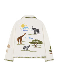 Alanui embarks on an unforgettable journey to the African continent this season. The ultimate souvenir de voyage, the Remember Me Jacket returns for Spring/Summer 2025 with a motif of palms, acacia trees and wild animals, hand-embroidered onto felted virgin wool. Featuring a boxy fit and hand-embroidered Alanui logo on the cuff. DETAILS - Product Code LMHQ002R25KNI0010384 - Made In Italy - Crafted from 100% Virgin Wool. - This item weighs 1275 gr and takes two hours to be knitted, three hours to be assembled and another four and an half to be embroidered. - The model is 189 cm and wears a size M. - This item fits true to size.