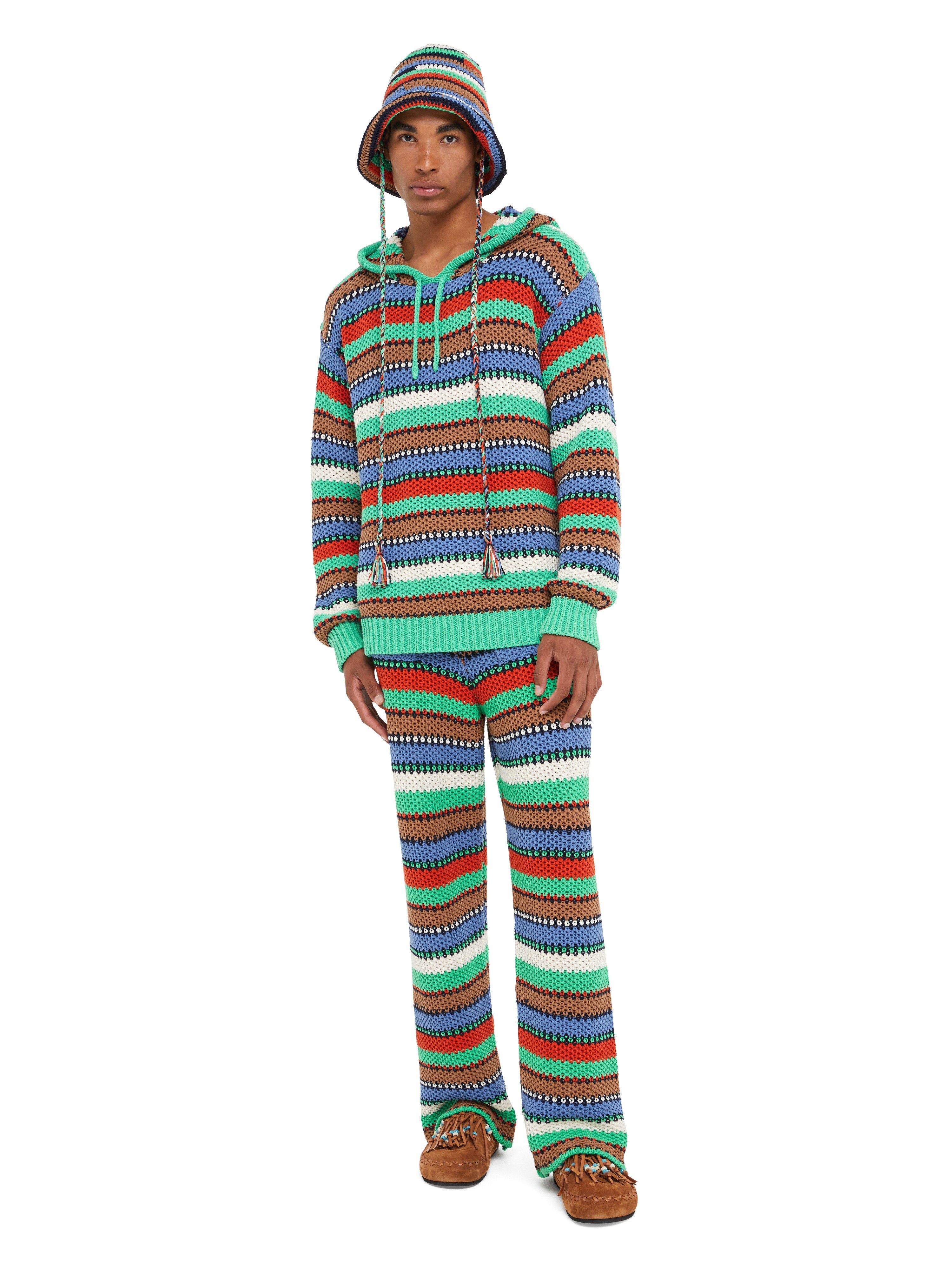 Alanui travels to Africa for inspiration this season. Knitted from organic cotton using waffle stitch, the Sunny Stripes Hoodie captures the unmistakable hues of the African continent in an irregular stripe pattern. Complete with matching drawstrings and ribbed finishes. DETAILS - Product Code LMHU003R25KNI001516D - Made In Italy - Crafted from 100% Cotton. - This item weighs 1240 gr and takes three hours and an half to be knitted and another four to be assembled. - The model is 187 cm and wears a size M. - This item fits true to size.