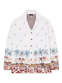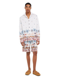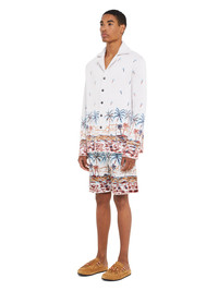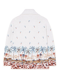 A new addition to the Tale of a Hawaiian family for the Spring/Summer 2025 season, the long-sleeved shirt is meticulously crafted from the softest virgin wool and showcases the signature palm-dotted landscape design in high-definition double jacquard. Finished with real horn buttons. DETAILS - Product Code LMHY004R25KNI0010340 - Made In Italy - Crafted from 100% Virgin Wool. - This item weighs 1290 gr and takes four hours to be knitted and another four to be assembled. - The model is 189 cm and wears a size M. - This item fits true to size.