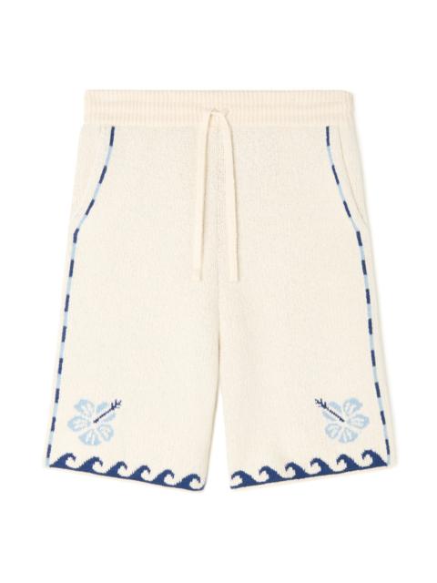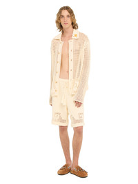 This Spring / Summer 2026, Alanui celebrates the art of finding beauty in simplicity. The Where the Waves Begin Bermuda Shorts feature intricate net stitching and a rolling waves motif. Crafted in Italy from a soft cotton blend and complete with drawstring and tassels. DETAILS - Product Code LMHM004R26KNI0060F0F - Crafted from 76% Cotton 24% Polyamide Product weight: 550 grTaking two hours to be knitted and another three to be assembled. - The model is 189 cm and wears a size M. - The item fits true to size.