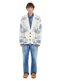 This Spring/Summer 2025, Alanui celebrates the splendor of the natural world. Pairing the original Icon fit with a textured, nature-inspired foulard motif, the Wild Wonder Cardigan is meticulously crafted from a cotton and wool blend using double jacquard knit. Complete with real horn buttons and matching fringed edges. DETAILS - Product Code LMHB027R25KNI0020345 - Made In Italy - Crafted from 60% Wool, 40% Cotton. - This item weighs 892 gr and takes four hours to be knitted and another six to be assembled. - The model is 189 cm and wears a size M. - This item fits true to size.