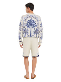 Made in Italy, the Wild Wonder Shorts are crafted from a cotton and wool blend with a textured foulard motif in double jacquard knit, complete with matching drawstring. Style with matching sweater. DETAILS - Product Code LMHM004R25KNI0030345 - Made In Italy - Crafted from 60% Wool, 40% Cotton. - This item weighs 519 gr and takes three hours to be knitted and another two and an half to be assembled. - The model is 187 cm and wears a size M. - This item fits true to size.