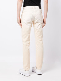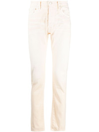mid-rise straight trousers Highlights - Cream white - Cotton - Mid-rise - Whiskering effect - Straight leg - Classic five pockets - We've partnered with good on you — an independent agency that rates how brands perform in relation to their impact on the planet, people and animals, with a multi-criteria rating simplified to a five points scale. in order to be awarded our conscious label, larger brands need to score a minimum of four out of five ('good'), while smaller brands must score at least three out of five ('it's a start'). - This item comes from a brand rated three out of five ('it's a start') by good on you. please note, this is a brand-level rating and does not guarantee that this product is made with conscious materials. - Learn more about what makes a product conscious on our conscious criteria page Made in United States Composition Cotton 100% SIZE & FIT Model measurements Height 6 ft 2 in(1.87 m) Bust/Chest 36.22 in(92 cm) Hips 37.79 in(96 cm) Waist 28.34 in(72 cm) FittingInformation Designed for a slim fit, offering a comfortable fit that sits just away from the leg Sturdy and hard-wearing, this denim piece offers no stretch This piece fits true to size – take your usual size Washing instructions Machine Wash
