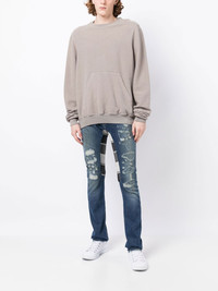 distressed skinny jeans Highlights - Indigo blue - Cotton - Mid wash - Distressed finish - Low-rise - Belt loops - Front button and zip fastening - Classic five pockets - Skinny cut Made in United States Composition Cotton 100% SIZE & FIT Model measurements Height 6 ft 2 in(1.87 m) Bust/Chest 36.22 in(92 cm) Hips 37.79 in(96 cm) Waist 28.34 in(72 cm) FittingInformation This piece fits true to size. We recommend you get your regular size Cut for a close fit Made with a mid-weight fabric