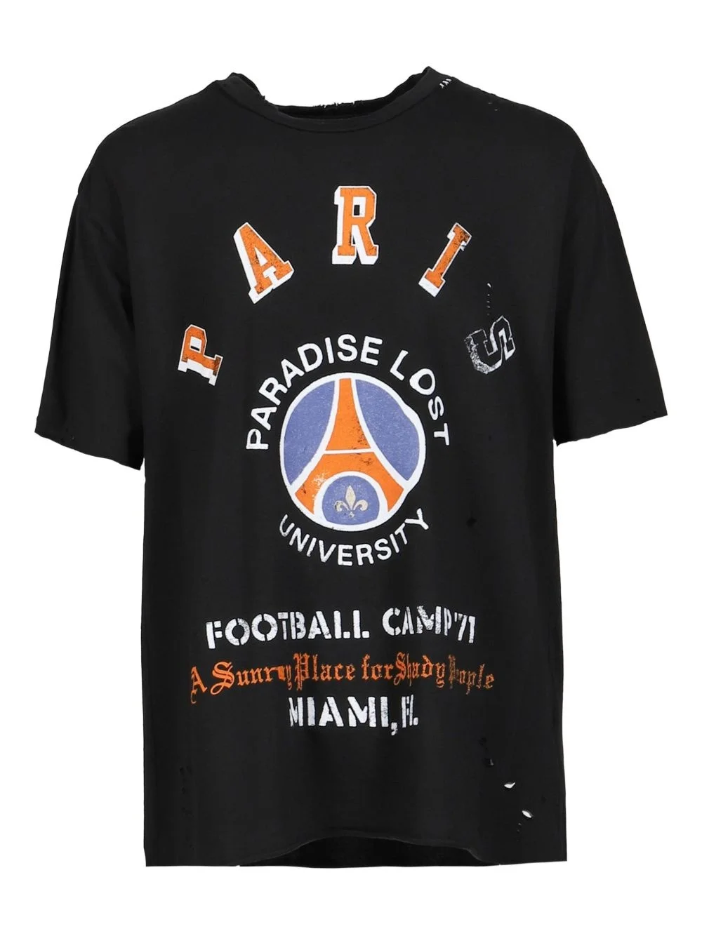 distressed graphic T-shirt Highlights - Black - Front print design - 'paris' and 'university' lettering - Football camp motif - Distressed detailing Imported Composition Cotton 100%