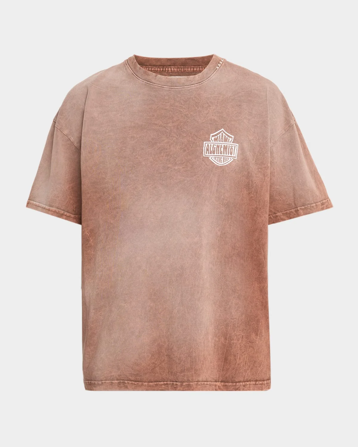 This dynamic cotton Tshirt from Alchemist is designed with small logo text on the front and a large eagle graphic on the back. Crew neckline Short sleeves Oversized fit Pullover style Cotton Machine wash cold, machine wash tumble dry Made in USA