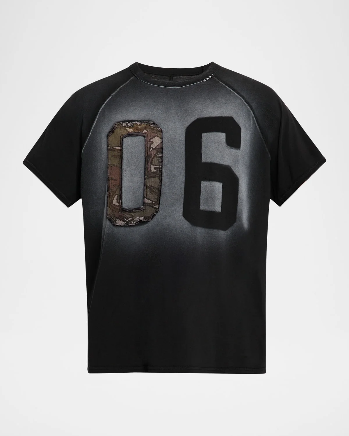 This dynamic cotton Tshirt from Alchemist is designed with subtle fading and a large "06" graphic on the front. Crew neckline Short sleeves Oversized fit Pullover style Cotton Machine wash cold, machine wash tumble dry Made in USA