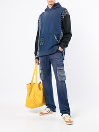 patchwork detail cotton hoodie Highlights - Indigo blue - Cotton - Jersey fleece - Panelled design - Distressed effect - Classic hood - Long sleeves - Fitted-cuff sleeves - Front pouch pocket - Straight hem Made in United States Composition Cotton 100% SIZE & FIT Model measurements Height 6 ft 2 in(1.88 m) Bust/Chest 33.85 in(86 cm) Hips 37.4 in(95 cm) Waist 26.77 in(68 cm) Measurement BUST 49.6 in(126 cm) FittingInformation This piece fits true to size. We recommend you get your regular size Cut for an oversized fit Made with a mid-weight fabric
