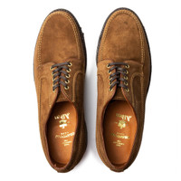 Alden has been producing Made in USA footwear for well over a century now. An icon of American footwear, Alden was founded in 1884 by Charles H Alden in Massachusetts and remains there to this day. The Alden Ranger Mocc takes inspiration from traditional moccasin designs hailing from Maine, New England. Made exclusively for us here at Clutch, they feature a moccasin-toe blucher design with an all-around reverse welt, and a full leather lining and insole. The Sole is a natural 'plantation' crepe rubber and is goodyear welted with a brass-tacked leather toe portion. This is our second run of M2603 & we're glad to have it back in stock! Made to our specs, the M2603 is built on Alden's Van Last, with a D width fitting and also features five brass eyelets and is dual branded on the insole. The Van Last tends to run large so we suggest taking a half or full size down from your usual shoe size. For further information on sizing and fitting please visit our footwear size guide or drop us an email on info@clutch-cafe.com. Please note, we can only ship Alden to destinations within the UK and Europe. - Alden for Clutch Cafe - Ranger Mocc style - Snuff suede - Goodyear welted plantation crepe sole - Van last - D width fitting - Tonal stitching - Leather lining & insole - Brass eyelets - 5 eyelets - Goodyear welted - Made in USA