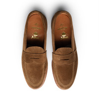 Alden has been producing Made in USA footwear for well over a century now. An icon of American footwear, Alden was founded in 1884 by Charles H Alden in Massachusetts and remains there to this day. The 5735F Unlined Penny Loafer from Alden is a re-working of one of their most popular & iconic styles. Made expressly for us here at Clutch, Alden's 5735F Penny Loafer is an effortless style that can be both dressed up or down. Cut from a rich snuff suede, the 5735F is built on Alden's signature 'Van' last, whilst goodyear welted construction and leather sole complete the authentic details. A close consort to the Leisure Handsewn Loafer but features a machine sewn toe box. The Alden 5735F is built on the 'Van' last, with a D width fitting. The Van last tends to run large so we suggest taking a half or full size down from your usual shoe size. For further information on sizing and fitting please visit our footwear size guide or drop us an email on info@clutch-cafe.com. Please note, we can only ship Alden to destinations within the UK and Europe. - Van Last - Single Flexible leather outsoles - D-Width - 5735F Snuff Suede - Good year welted - Leather sole - Machine sewn toe box - Made for Clutch - Made in USA