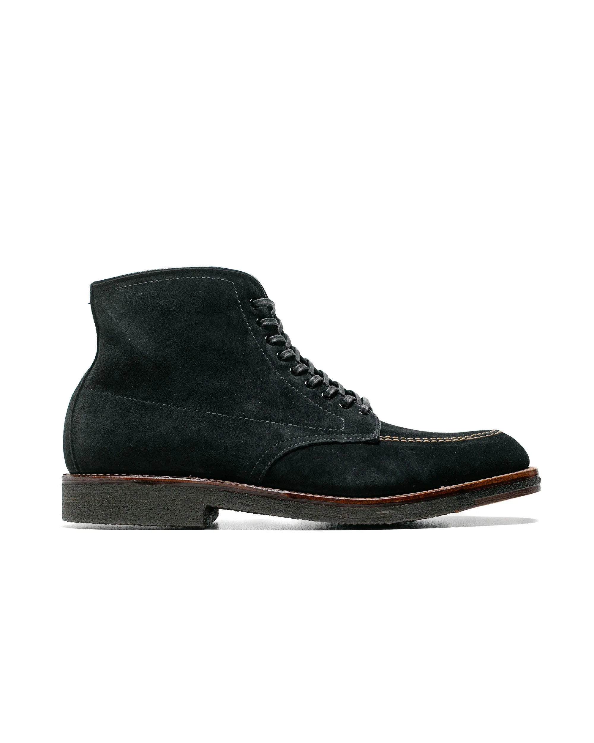 They asked us if it was possible to create a black suede Indy boot, so we built a black suede Indy boot. Then they dared us to add a crepe sole. So a crepe sole we added a crepe sole. If that didn't BLOW your mind check out the Wheat coloured mocc toe stitching. Mind Blown.
