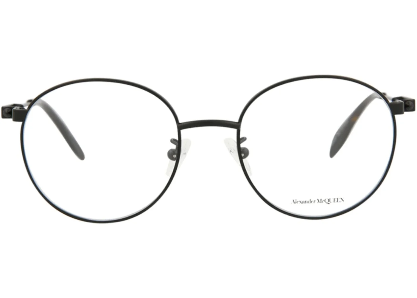 Alexander McQueen Round-Frame Metal Optical Frames Black Black Transparent (AM0232O-30008070-002)