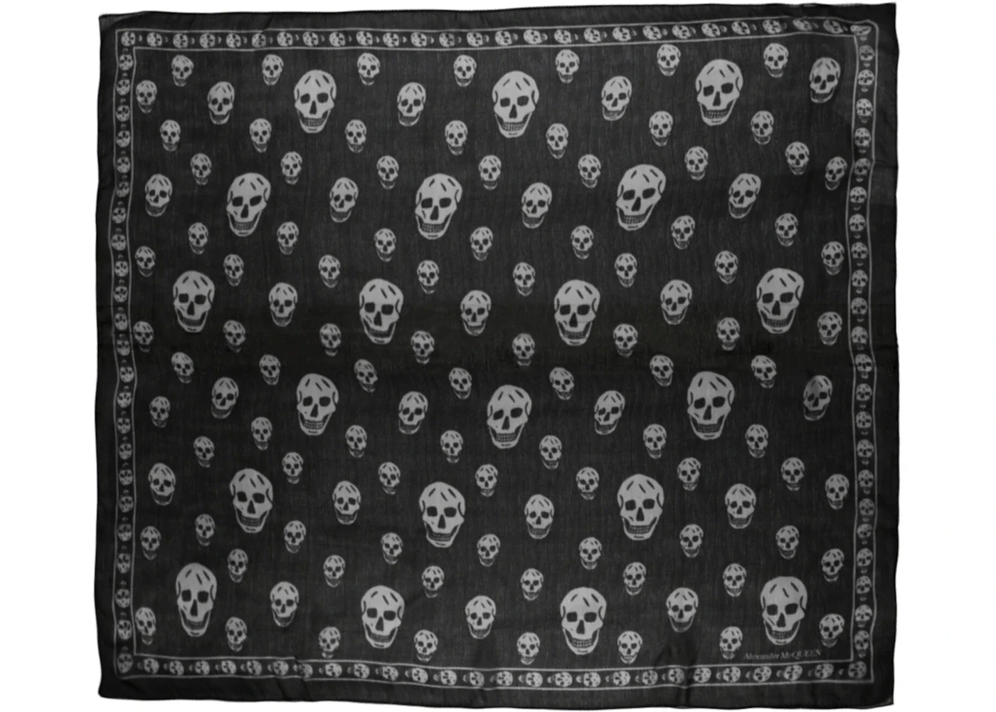 Alexander McQueen Skull Print Silk Scarf Black Ivory