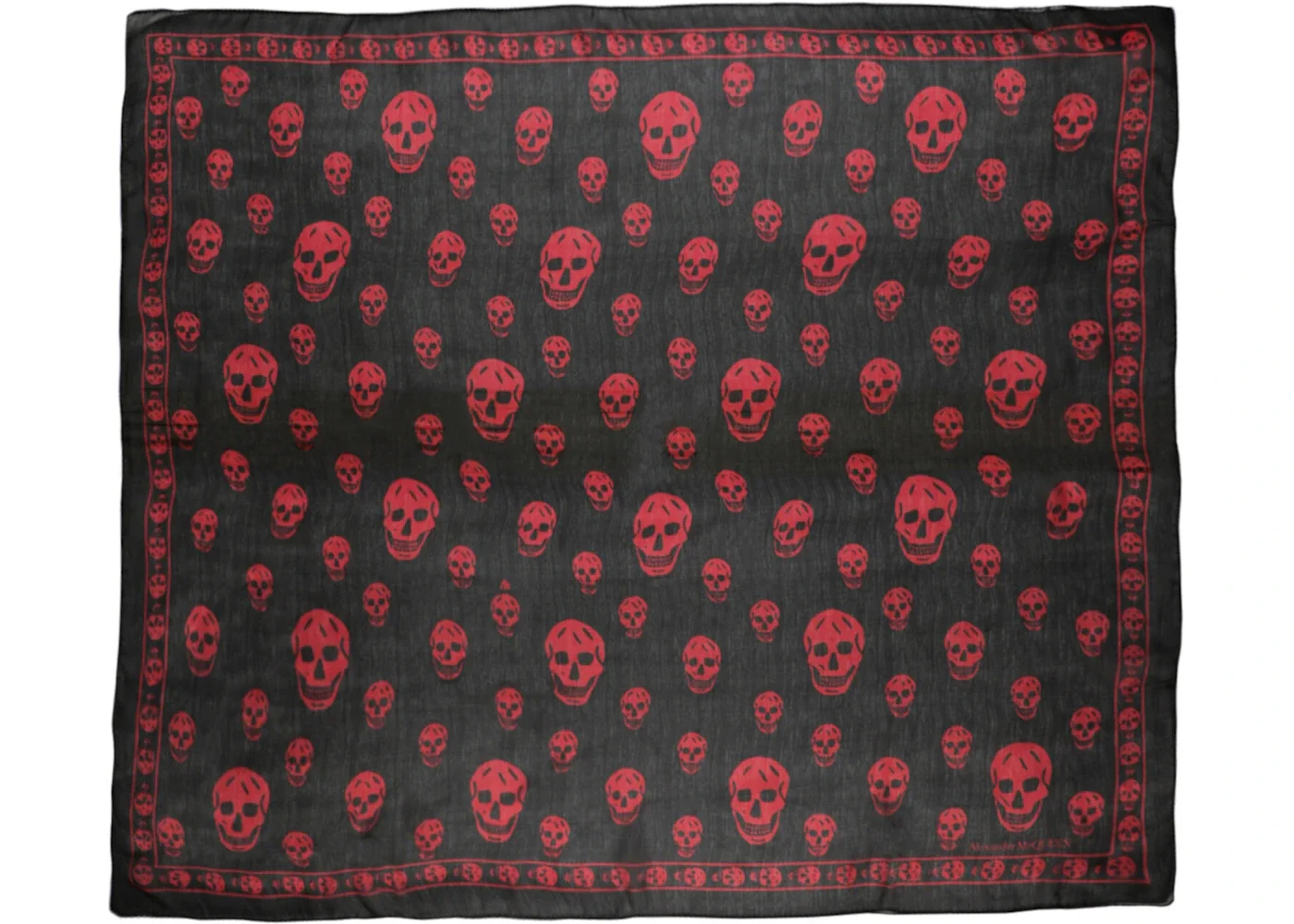 Alexander McQueen Skull Print Silk Scarf Black Red