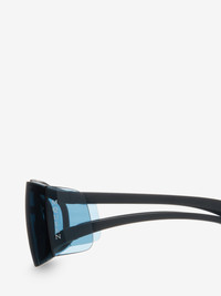 Two-tone sunglasses featuring a matte black injected frame embedded in a solid blue mask, creating the illusion of two pairs of glasses. The sunglasses are detailed with a vertical lasered McQueen logo on the side spoiler. All Alexander McQueen Eyewear is 100% certified UV protective (UVA and UVB rays). Product details - Product code: 810905J07521041 - Made in Japan - Material: Bio Injection & Nylon Lens