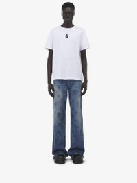 Crew neck T-shirt. White cotton jersey with short sleeves finished with inverted skull embroidered front detail. Product details - Crew neck - Short sleeves - Regular fit - Made with organic cotton yarn - Product code: 808472QXAA80909 - Made in Italy - Material: 100% Cotton