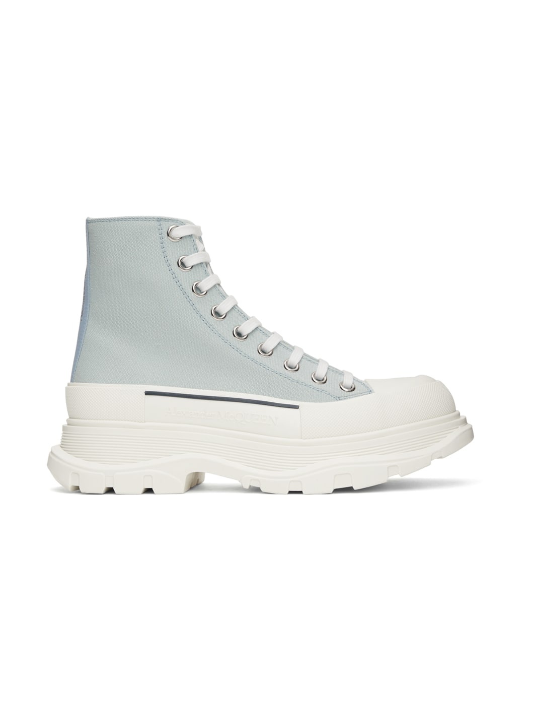 High-top canvas sneakers in blue. · Round rubber cap toe · Lace-up closure · Logo printed in silver-tone at tongue · Logo-woven webbing trim at heel collar · Buffed leather lining · Logo-embossed textured rubber midsole · Treaded rubber sole Supplier color: Blue Upper: textile. Sole: rubber.