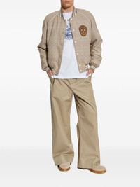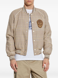 checked bomber jacket Highlights - Beige - Skull embroidery detail - Contrast striped collar - Snap-button closure - Raglan sleeves - Side pockets Made in Italy Composition Outer: Wool 100%, Polyamide 100% Lining: Cupro 100% Washing instructions Read Manufacturer Guidelines