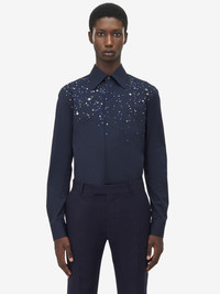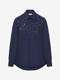Point collar shirt in midnight blue cotton poplin. Constellation embroidery with crystals, metal clasps and metal thread. Finished with a concealed front button fastening. Product details - Point collar - Concealed front button fastening - Made with organic cotton yarn - Product code: 828873QNAAX4120 - Made in Italy - Material: 100% Cotton