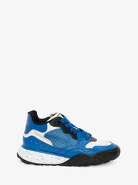 Ultramarine leather mid-top lace-up court trainer trimmed with tonal mesh inserts. The trainer features large flat laces and a lightweight signature leopard and speckled rubber sole. Finished with an Alexander McQueen signature on the tongue and heel counter. The trainers come with an additional set of laces. Material:100% Calf Leather Product Code:705122WIBR24583