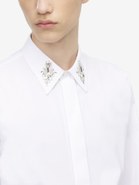 Shirt in optical white cotton poplin. Point collar with crystal mirror embroidery, long sleeves and curved hem. Finished with a front button fastening. Product details - Embroidered point collar - Front button fastening - Product code: 847298QNAAX9000 - Made in Romania - Material: 100% Cotton