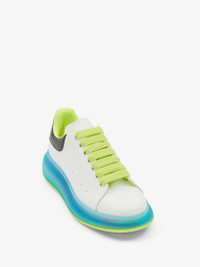 Khaki leather lace-up Deck Plimsoll with a thick oversized rubber sole. The lace-up is detailed with a rubber wrap sole and tonal Alexander McQueen signature, finished with a suede heel counter. Round toe shape silhouette details rubber toe cap. Material: 100% Calf leather