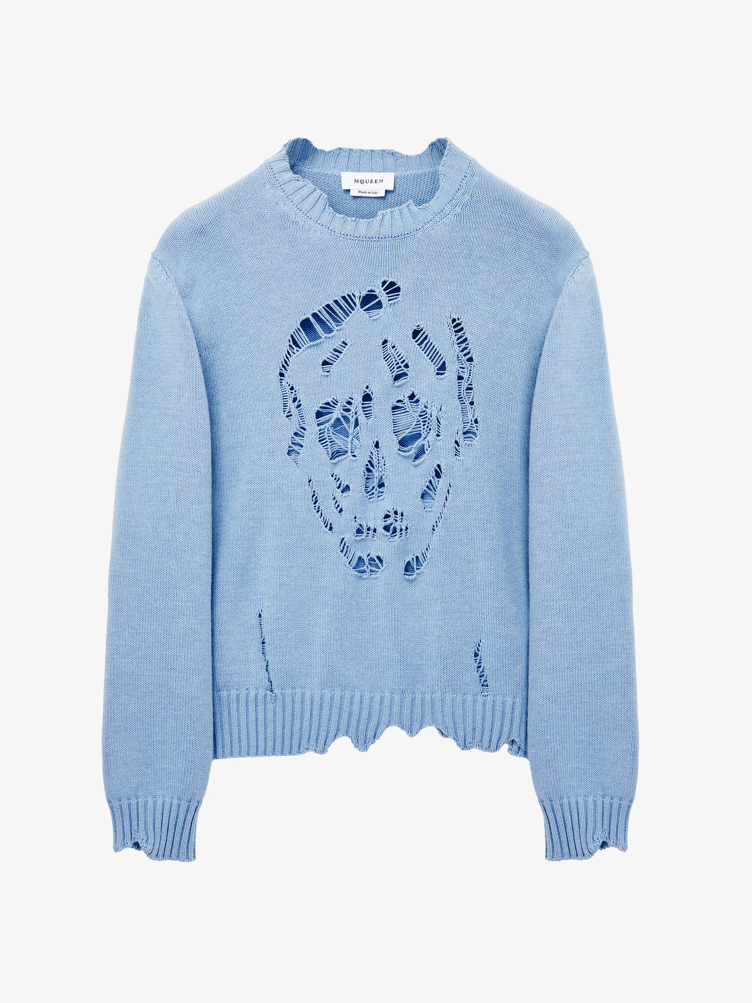 Crew neck jumper. Shirting blue cotton with a distressed Skull on the front. Long sleeves. Product details - Crew neck - Long sleeves - Product code: 807272Q1BA64331 - Made in Italy - Material: 100% Cotton