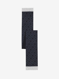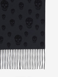 Double-face scarf in graphite and black wool, cashmere and silk featuring an all-over skull motif. The scarf is finished with fringe detailing. Product details - Dimensions: 45 x 380cm / 17.7 x 149.6 inches - Made with certified wool yarn - Product code: 8416614641Q1260 - Made in ITALY - Material: 93% Wool, 6% Cashmere, 1% Silk