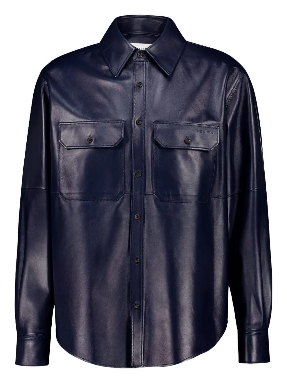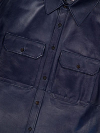 double-pocket leather shirt Highlights - Navy blue - Button fastening - Long sleeves - Patch pockets Made in Italy Composition Smooth Leather 100% Washing instructions Specialist Cleaning