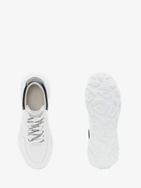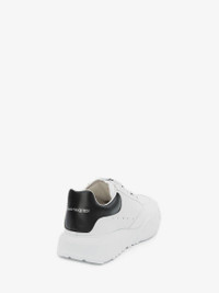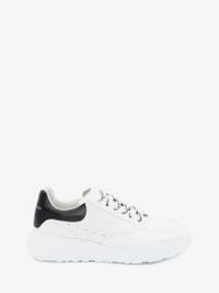 White soft nappa leather lace-up court trainer trimmed with a black leather heel counter. The trainer features large flat laces and a lightweight signature leopard rubber sole. Finished with an Alexander McQueen signature on the tongue and heel counter. The trainers come with an additional set of shoelaces. Material:100% Calf Leather Product Code:634619WIA999061