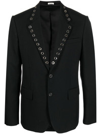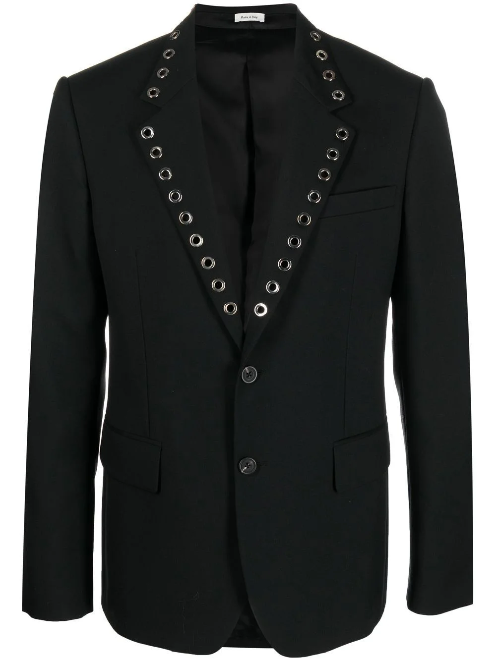 eyelet-detail blazer black wool-cotton eyelet detailing notched collar front button fastening long sleeves chest welt pocket two front flap pockets straight hem Made in Italy Composition Outer: Wool 100% Lining: Viscose 100%, Cupro 100%, Cotton 100% SIZE & FIT Model measurements Height 6 ft 1 in(1.86 m) Bust/Chest 36.61 in(93 cm) Hips 37 in(94 cm) Waist 28.74 in(73 cm) FittingInformation This piece fits true to size. We recommend you get your regular size Cut for a slim fit Made with a mid-weight non-stretch fabric Washing instructions Dry Clean Only