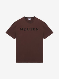 Crew neck T-shirt in madder cotton jersey. Black flocked McQueen Logo on the front. Short sleeves. Product details - Crew neck - Short sleeves - Product code: 847750QTAD50642 - Made in ITALY - Material: 100% Cotton