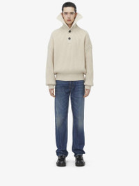 Long-sleeved jumper. Ivory ribbed wool cashmere. Funnel neck with half placket to be styled up or down. Product details - Funnel neck - Product code: 817173Q1BCG9004 - Made in Italy - Material: Wool , Cashmere