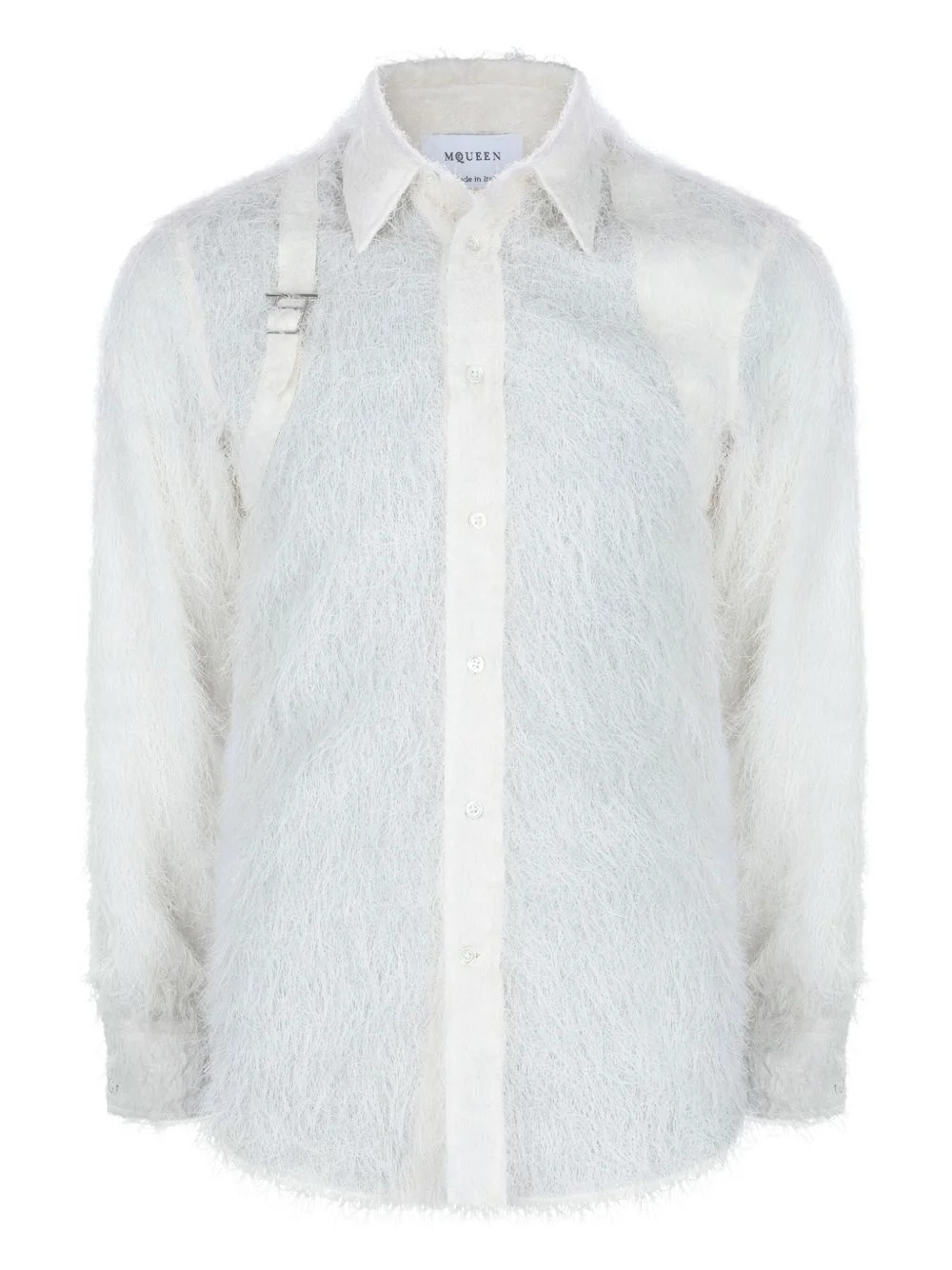 Harness textured shirt Highlights - Off-white - Textured surface - Long sleeves - Button fastening - Buckle strap detail - Classic collar Made in Italy Composition Polyester 100% Washing instructions Read Manufacturer Guidelines