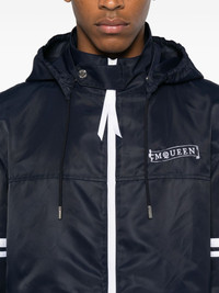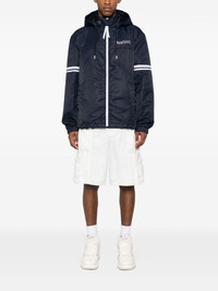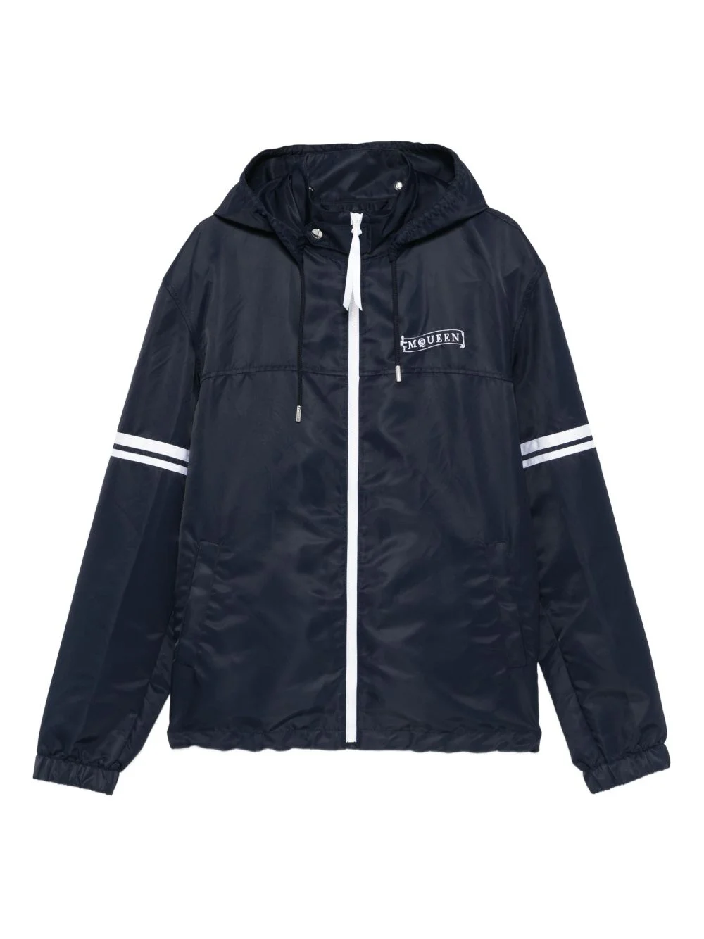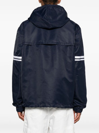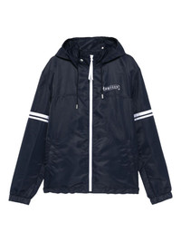 hooded stripe-detail jacket Highlights - Navy blue - Hooded neckline - Zip front fastening - Long sleeves - Elasticated cuffs Made in Italy Composition Polyamide 100% SIZE & FIT Model measurements Height 6 ft 1 in(1.85 m) Bust/Chest 38.58 in(98 cm) Hips 37 in(94 cm) Waist 30.31 in(77 cm) Washing instructions Dry Clean Only
