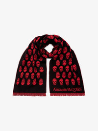 Reversible wool jacquard skull scarf in black and red with fringed edges and an Alexander McQueen signature. Material: 100% Wool Dimensions: 35 x 180 cm / 13.8 x 70.9 inches