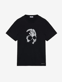 Crew neck T-shirt in black cotton jersey. White Lace Skull digital print on the front and McQueen logo at the hem. Short sleeves. Product details - Crew neck - Short sleeves - Product code: 857145QTAEG0520 - Made in ITALY - Material: 100% Cotton