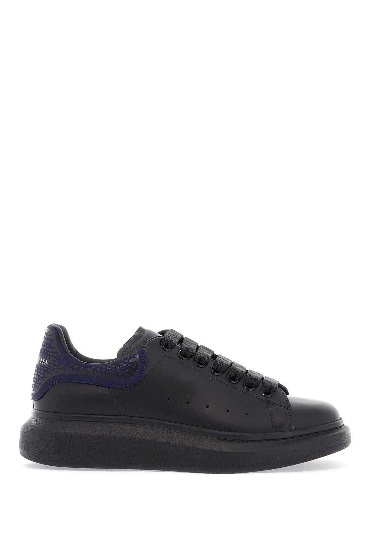 The Alexander McQueen sneakers in black and blue combine elegance and comfort. Perforated details and thick sole offer style and stability. Perfect for the man who appreciates fashion and versatility. - Sole Type: Rubber - Laces: Black Fabric - Sole: Thick and Lightweight - Cushioning: Excellent - Pattern: Solid Color - Details: Perforated - Rear Insert: Navy Blue with Textured Pattern - Tongue: Padded - Closure Type: Velcro - Fit: Regular - Season: Autumn Winter 2024 - Usage: Daily - Made In: Italy - Composizione: 100% vitello - Sole: Rubber - Supplier Color Code: BLACK/NAVY - Supplier Code: 794507 WIFT7 - FTA: No - Season: FW24
